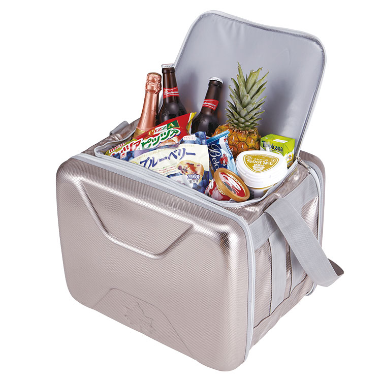 外部からの衝撃に強く、シェルプロテクト構造により瓶類などを守ります。また、表面は太陽光を反射するメタルシルバーカラーです。