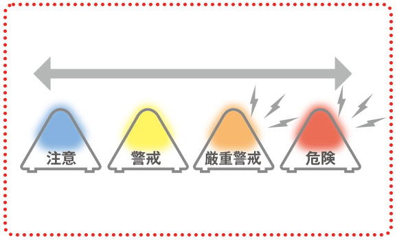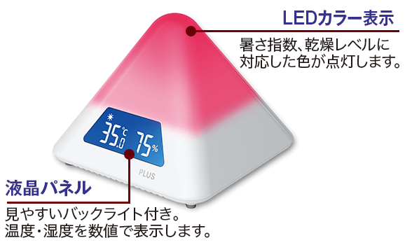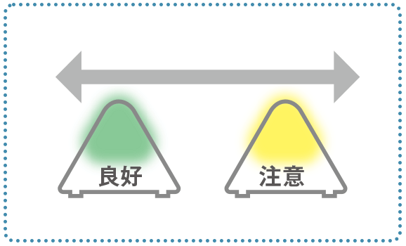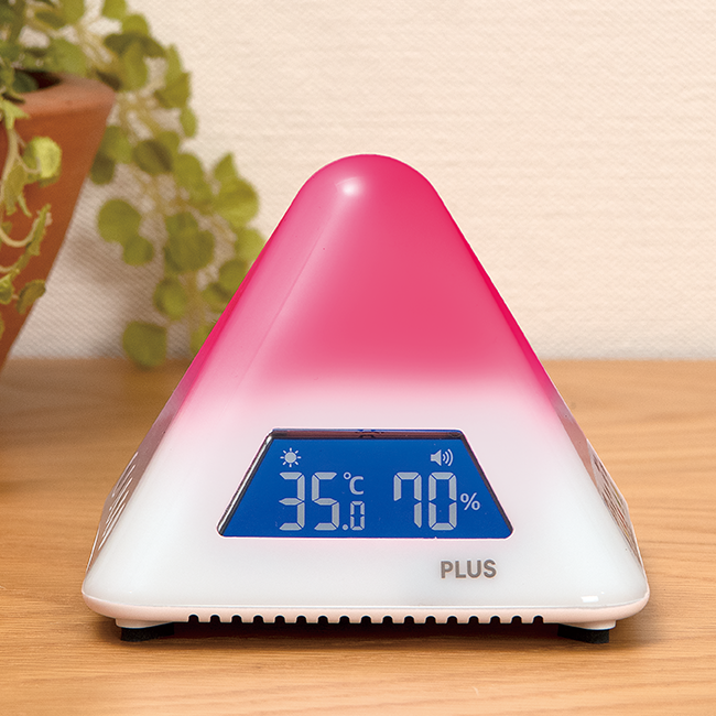 室温と湿度から、熱中症になりやすい室内環境の注意レベルを4段階でお知らせします。危険度が高まると、LEDライトの色の変化に加え、ブザー音で注意喚起も。熱中症危険度がすぐにわかります。