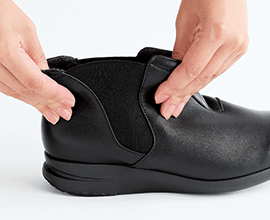 ゴム素材の伸びる履き口だから、すぽっとカンタンに足が入ります!急いでいる時や脱ぎ履きの多い旅行先でも大変便利。見た目も自然ですっきりです。