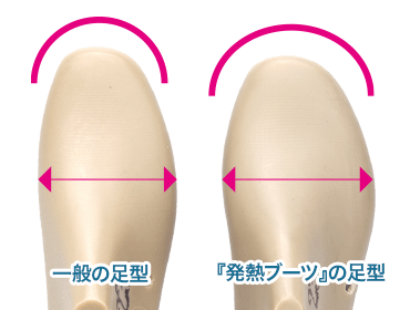 『発熱ブーツ』の足型親指から小指の付け根、つま先までゆったり。 -