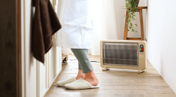 そんなお悩みを解決するのがコンパクトでスリムな『夢暖望』です。火を使わない遠赤外線だから、安心して様々な場所に置くことができます。