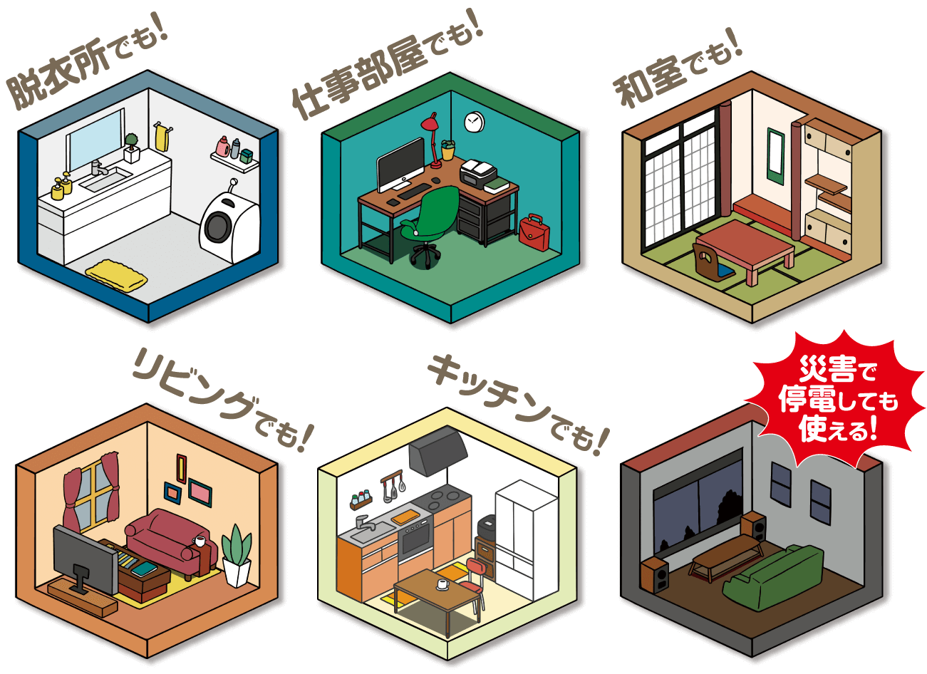 エアコンやこたつなど、メインで使う暖房機に対して、脱衣所やキッチンなど、ちょっとした時にあると嬉しいサブ暖房機。せっかく買うなら“防災兼用”が賢い選択です。