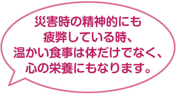 災害時の精神的にも疲弊しているとき、温かい食事は体だけでなく心の栄養にもなります。