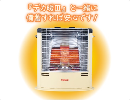 災害による停電時の暖房用としてはもちろん、『デカ暖Ⅲ』やカセットこんろなど、日常での使用にも活躍します。