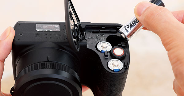 電源は単三形アルカリ乾電池を採用。どこでも入手しやすいので、もし旅先で電池切れになっても大丈夫です。※充電池の使用可。