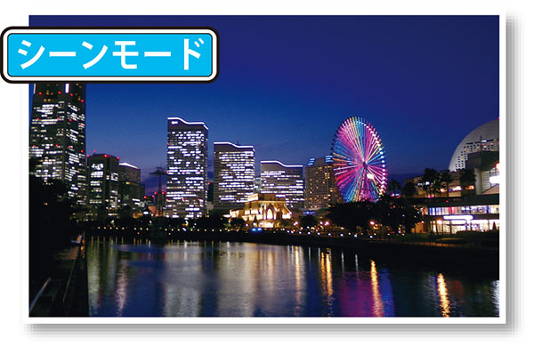 ▲専用の「シーンモード」を使えば、撮るのが難しい夜景も美しく撮影できます。