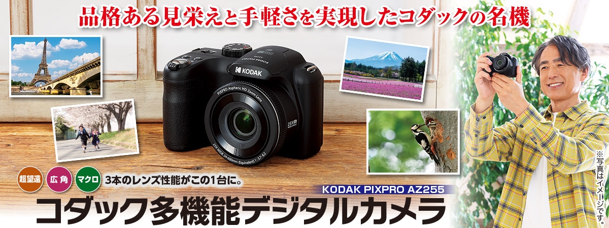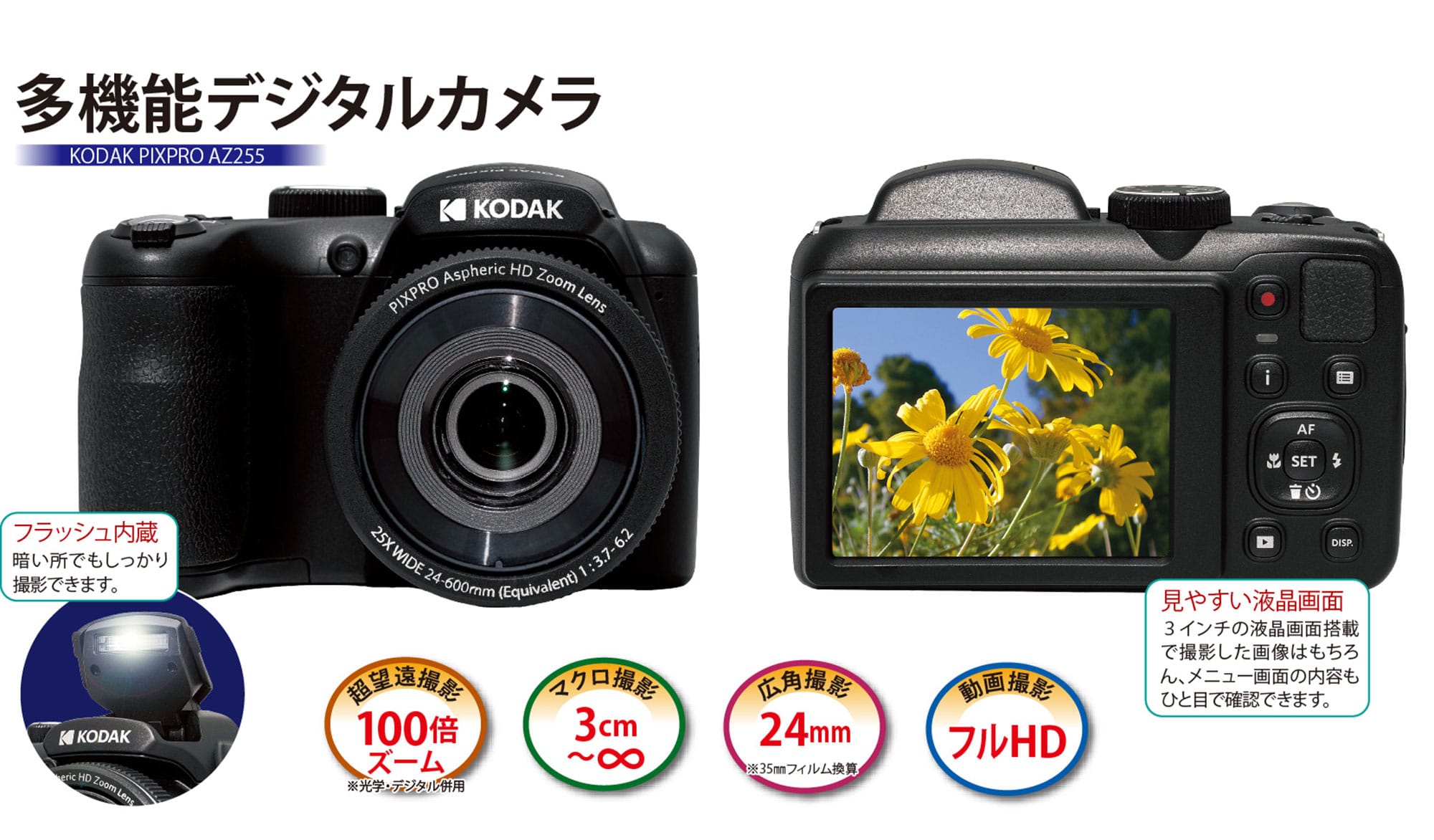 家族との楽しい旅行や、お子様お孫様の笑顔、道端で可憐に咲く花々…。心が動いたその一瞬をコダックピクスプロ『AZ255』は逃しません。一眼レフを思わせる風格、超望遠による大迫力の写真、気軽に持ち運べるコンパクトサイズ…持つ喜びと撮る楽しみを与えてくれる名機です。