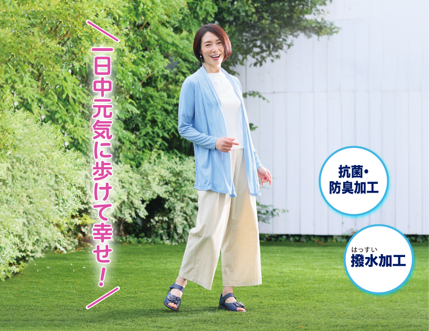 抗菌防臭加工で、ニオイやムレを軽減します。
