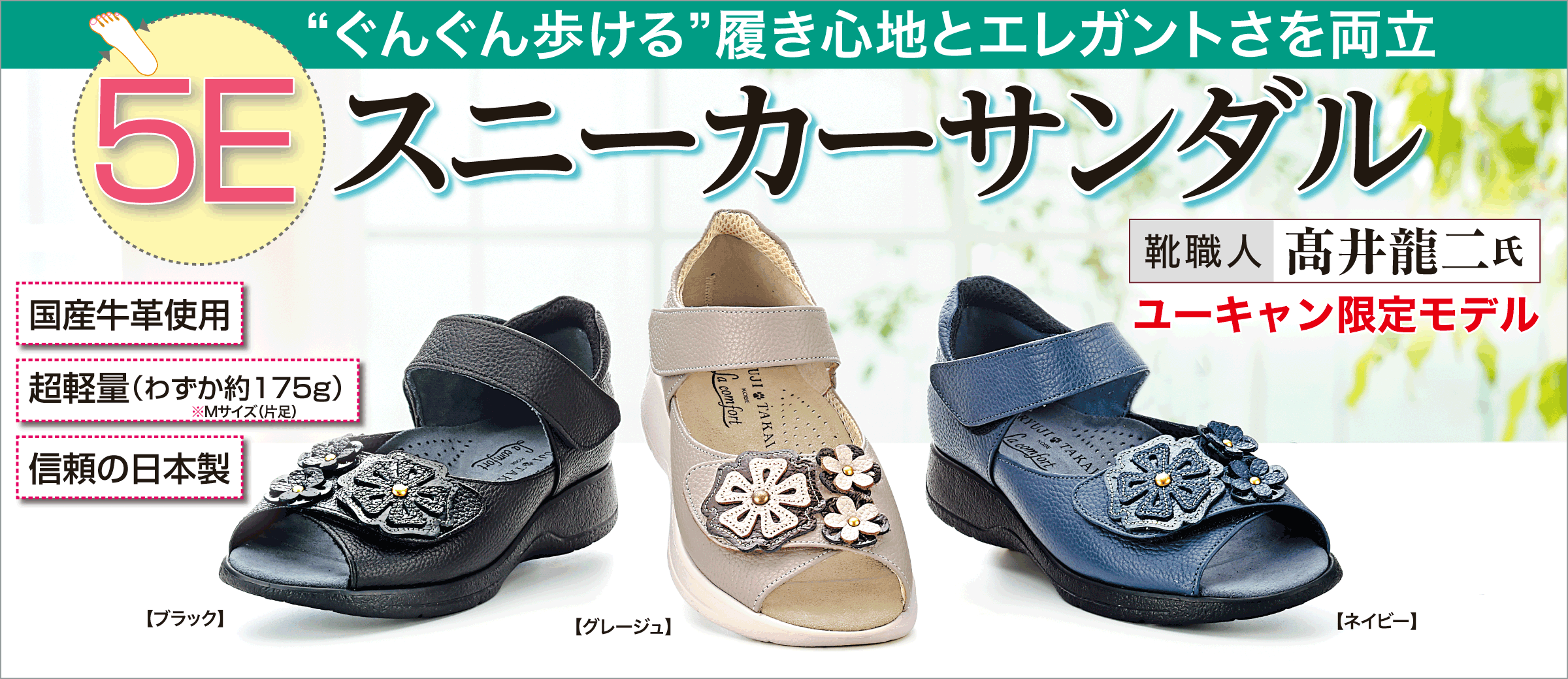 “外反母趾でも歩きやすい靴”で有名な神戸の靴職人・髙井龍二氏が手がけた、ユーキャン限定の逸品。