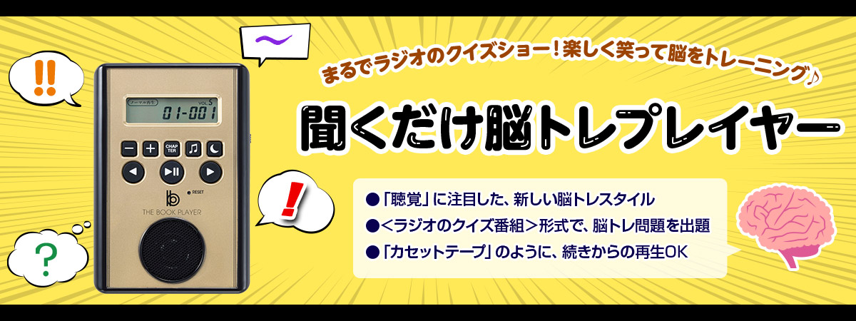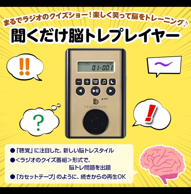 「聞くだけ脳トレプレイヤー」は、あなたの“聴覚”を最大限に使い、脳をトレーニングしていく画期的な商品です。