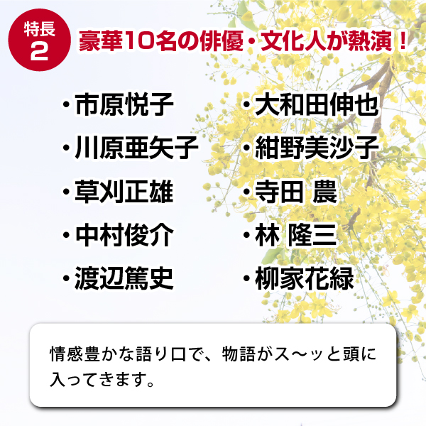 名優たちによる情感豊かな朗読をぜひご一聴ください。
