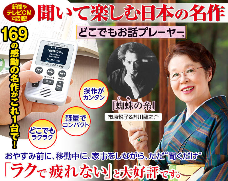 「寝ながらでも聞けるので大変喜んでいる」「小型で持ち運びができ、とても操作がラク」「昔読んだ名作の感動が再び…」と全国で大好評の『聞いて楽しむ日本の名作 どこでもお話プレーヤー®』をご紹介します。