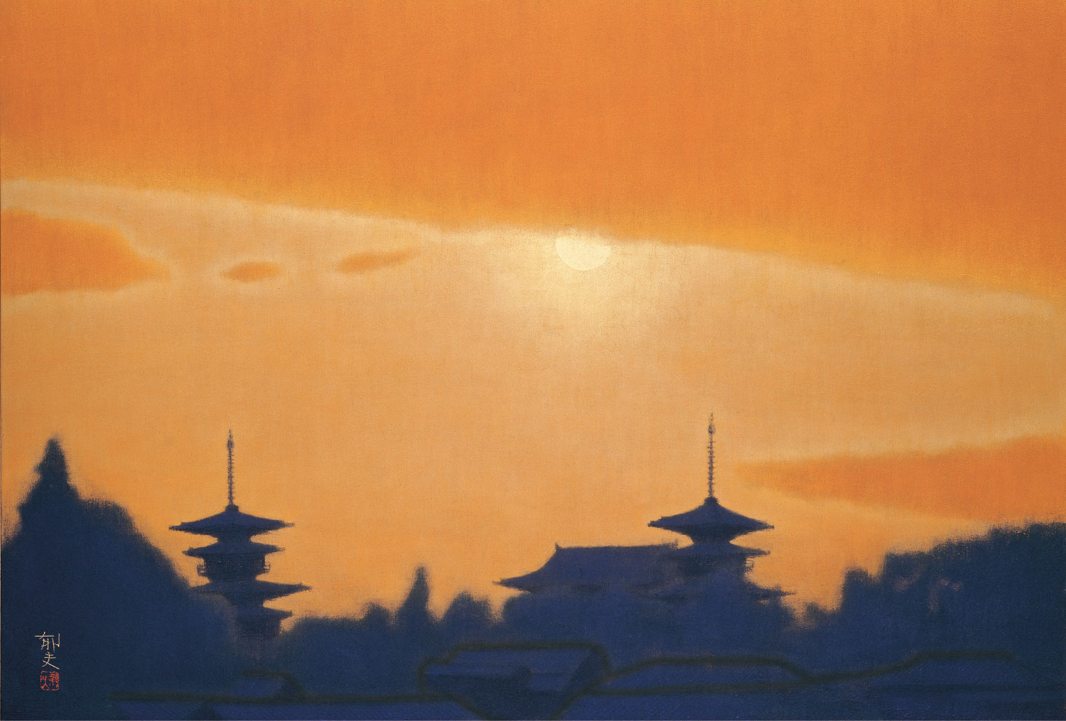 寺院の塔が好きと度々発言していた画伯。玄奘三蔵の教えを継ぐ薬師寺には画伯にとって特別な思いがあったのだろう。画伯は「シルクロードの旅は楽なものではありませんが、夕日を見ますとね、今日も無事に終わったという感謝の気持ちが自然とわいてきますね」と語っていた。