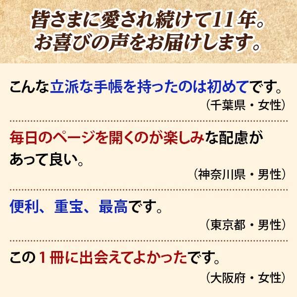 ご愛用者の皆さまのご意見を参考に毎年改良を重ねてきた、これぞまさに“大人の手帳”の決定版です。