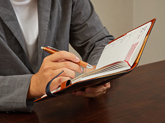 毎年多くのお客さまからご好評をいただいている「ユーキャン手帳」。本革カバー付きの特別なセットは、より長く、より愛着を持ってご使用いただきたいという想いから生まれました。