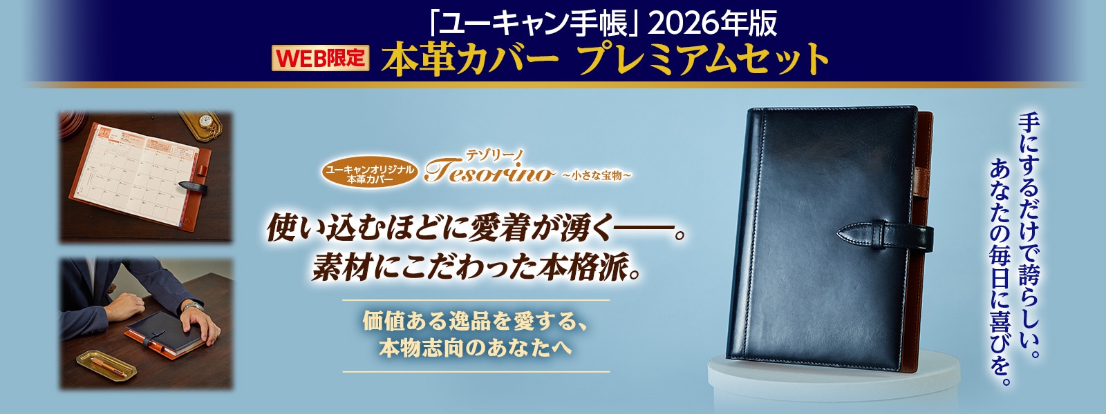 「ユーキャン手帳」の魅力をさらにグレードアップさせる本革カバー付きセットをぜひお申込みください!
