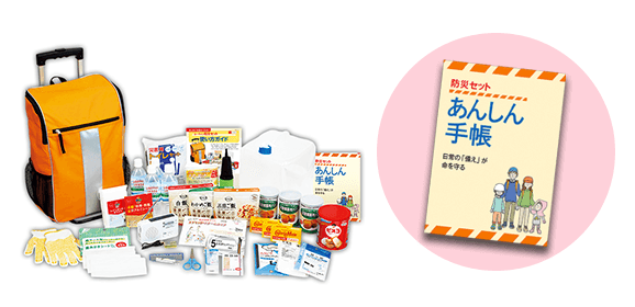 そういった考えで、ユーキャンの「防災セット」(リュック)には「あんしん手帳」という冊子を入れています。防災について知っておくべきことや対策をまとめました。“防ぐ”という意味でも知識は「前もって知っていなくては意味がない」ですし、いざ災害が起こった時に「どう行動すればよいか」ということから「生活を再建するための知識」などまで網羅していますので、本当に頼りになる一冊です。