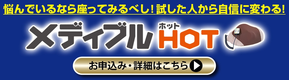 本ページでは、『メディブルHOT』の魅力をご紹介した動画をご覧いただけます。さらに、専門家の先生に伺った“あのお悩み”の原因についての解説や、『メディブルHOT』を実際にご使用になった方の喜びのお声も掲載しています。