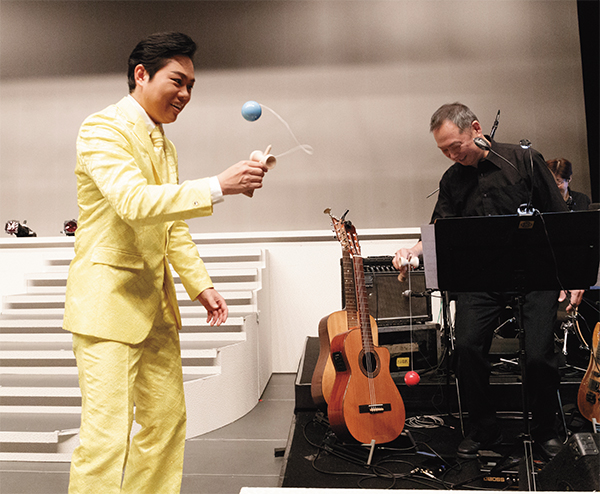 2013年頃から、コンサートの余興として始めたという「けん玉」。